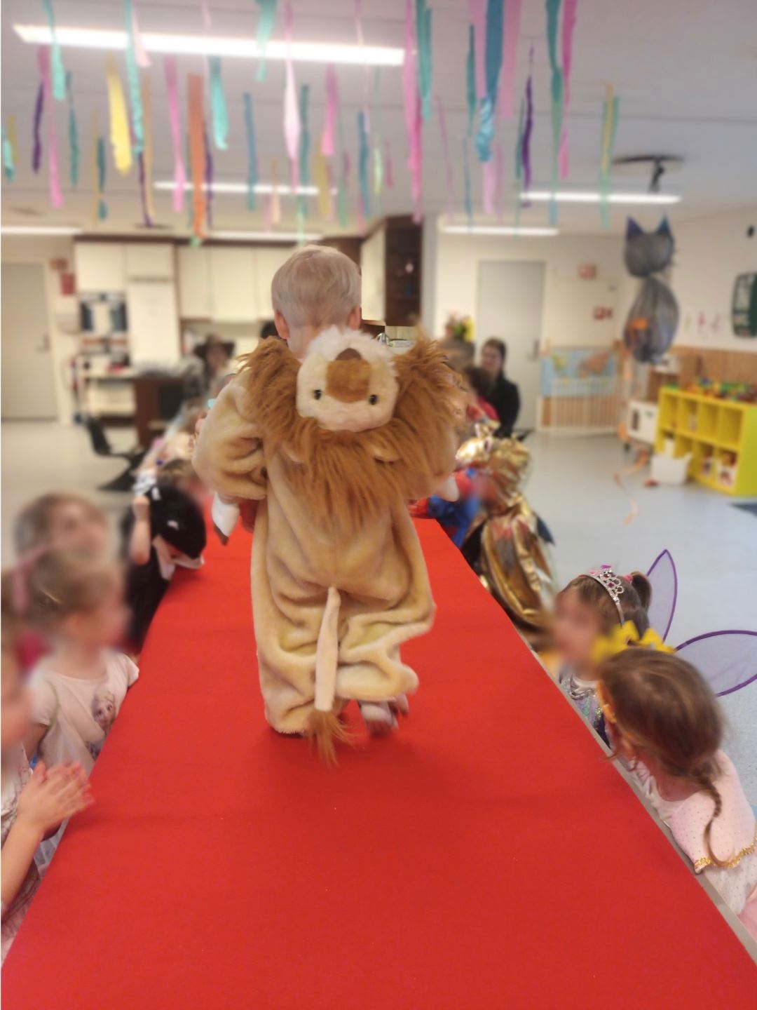Mange forskjellige dyr, superhelter, feer, politi- og brannkonstabler, prinsesser, troll, havfruer og mange fler koser seg med karnevalsfest her i barnehagen.