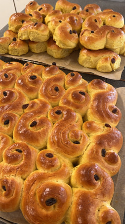 Det bakes både pepperkaker og lussekasser til luciatoget vårt.