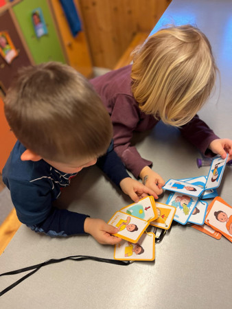 ALLE har godt av å forsterke språkutviklingen sin - både visuelt i form av bilder, men også med tegn til tale. Barna lærer tidlig at kommunikasjon er mer enn bare ord. En verdifull erfaring å ha med seg videre i livet.