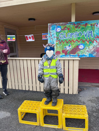 Etter en høytidelig innmars der både musikk, flagg og fane stod høyt, var det tid for felles oppvarming med styrer, Tonje i spissen og VM-maskoten "Snedi" sin sang ´Vinga´på høyttaleren.