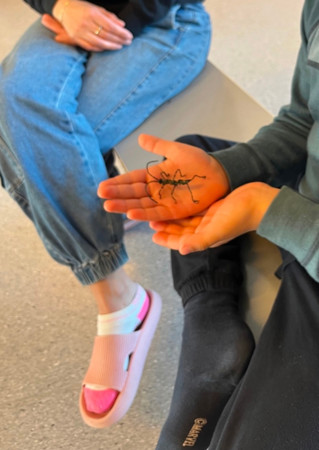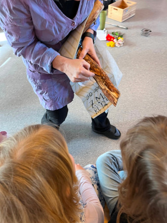 Barnehagen har fått besøk av "Stenurella" som er billen i logoen til kunstforeningen. Vi fikk lære om billen, og at malekoster faktisk kan være laget av halebusten til grisen!